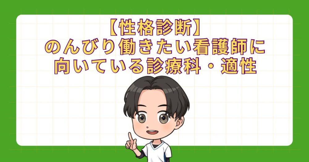 【性格診断】のんびり働きたい看護師に向いている診療科・適性
