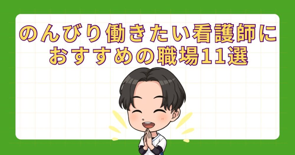 看護師がのんびり働きたいと思うのは、決して甘えではありません。この記事では、介護施設で現役主任として働く筆者の経験も交えながら、看護師がゆとりを持って働ける職場を11カ所厳選してご紹介します。
