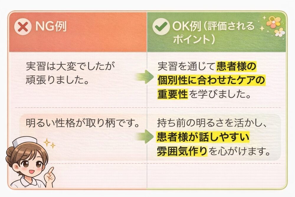 関連記事:看護師の自己PRの書き方と成功例|急性期・精神科での実体験から学ぶ魅力の伝え方