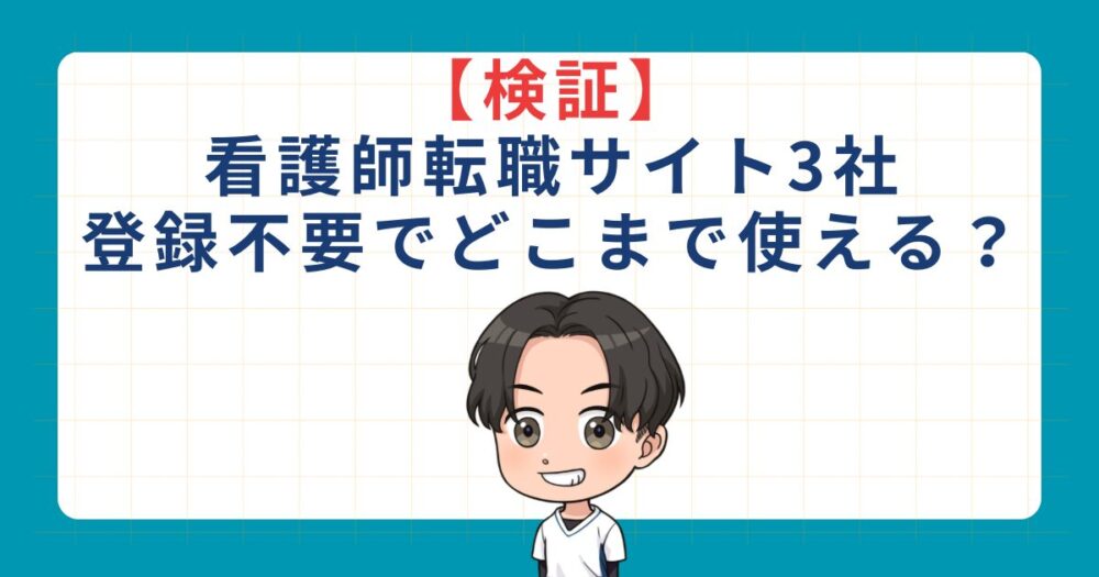 【実体験】ナース専科転職・レバウェル看護・ジョブメドレーは登録不要でどこまで使えるか検証