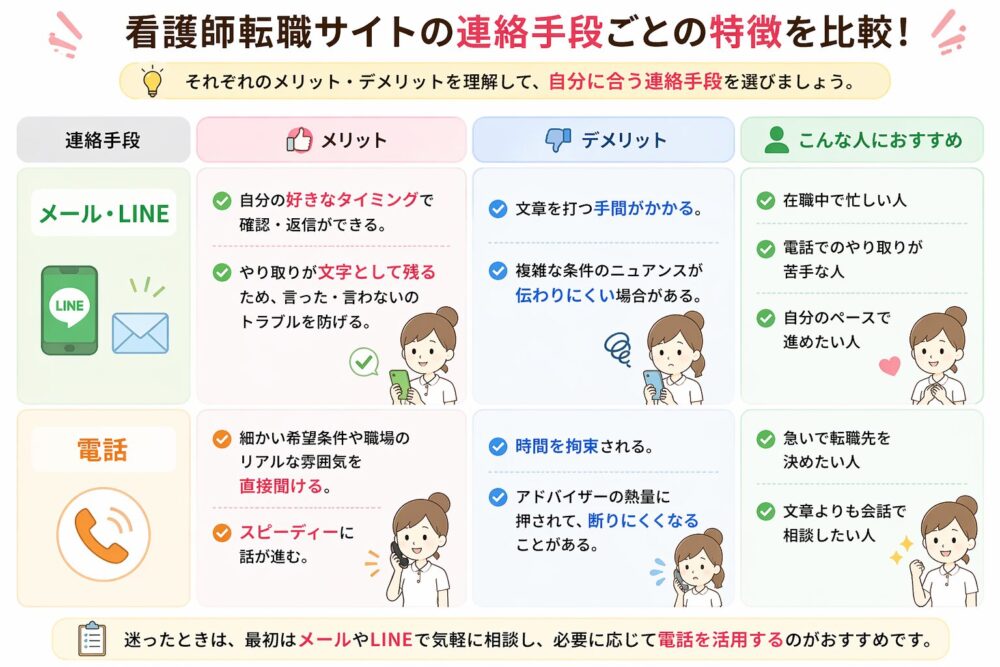 看護師転職サイトに登録する際、最も多い不安が「しつこく電話がかかってきたらどうしよう」というものです。この不安をなくすためには、登録直後や最初のヒアリングの段階で、希望する連絡手段と連絡可能な時間帯をはっきりと伝えることが非常に重要です。