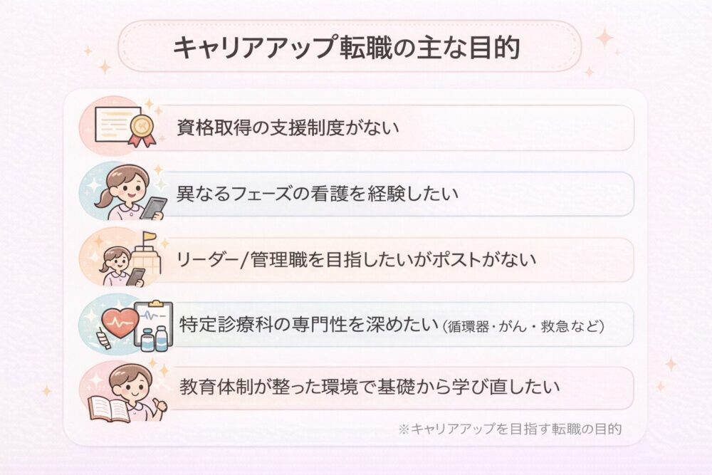 これまでのネガティブな理由とは異なり、「もっと成長したい」「専門性を高めたい」といったポジティブな理由で転職を選ぶ看護師も増えています。