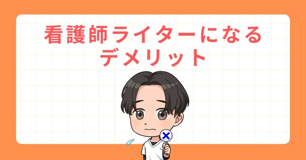 看護師ライターのデメリットの一つは、収入が安定しないことです。看護師として働く場合は定期的な給与が支払われますが、ライターの場合は案件ごとに報酬が異なります。ライティングを始めたばかりの頃は、十分な収入を得るのが難しいことが多いです。