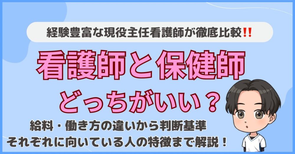 看護師と保健師の違いを知りたい人必見!この記事では、看護師と保健師の違いを解説します。実は、看護師と保健師では役割や資格、勤務先などに明確な違いがあります。記事を読めば、看護師か保健師かを選ぶ際のヒントを得ることが可能です。 -